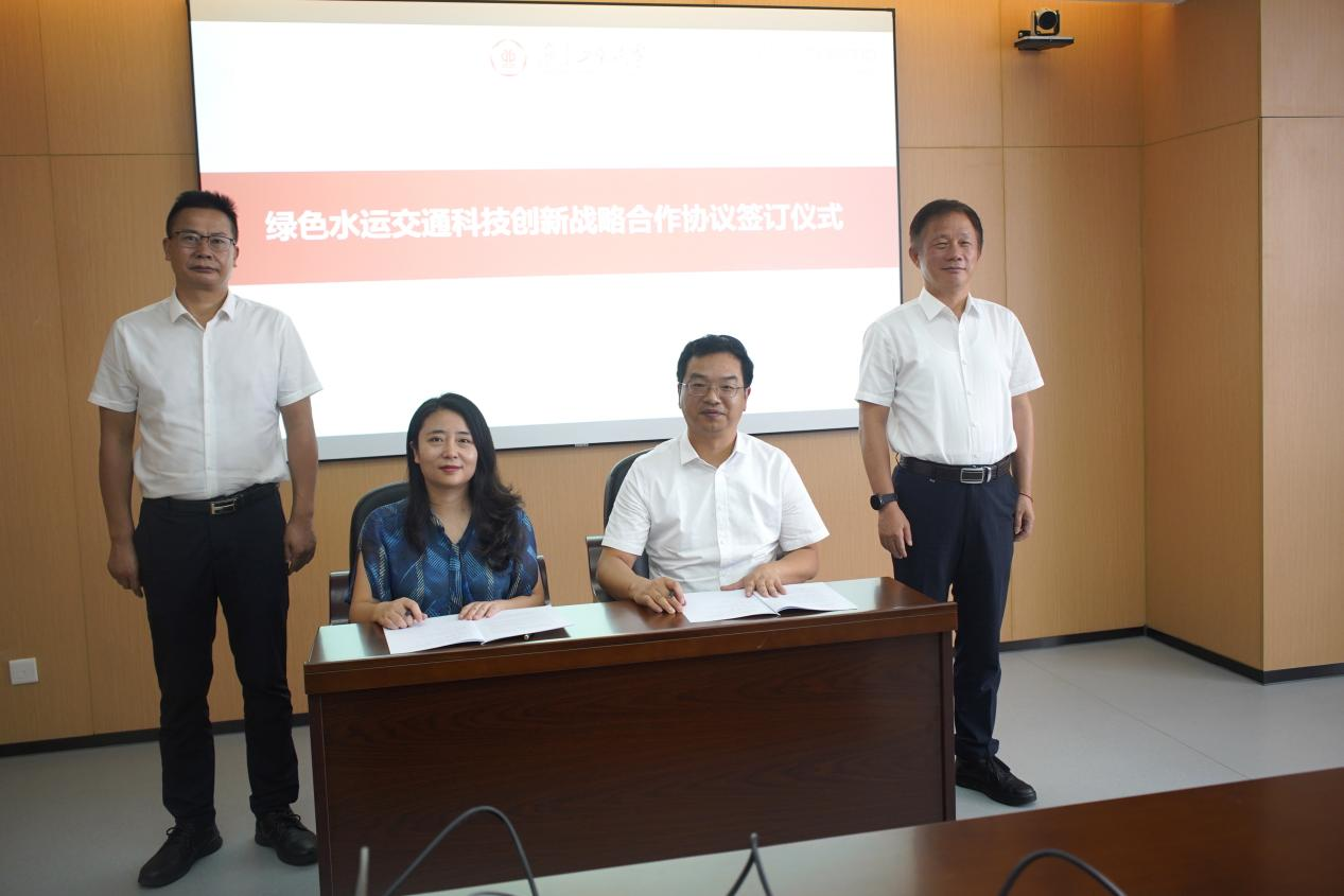 随后,双方就共建创新平台、研发核心技术、联合培养人才和推广建设成果等方面的合作进行深入交流,并签订了绿色水运交通科技创新战略合作协议。