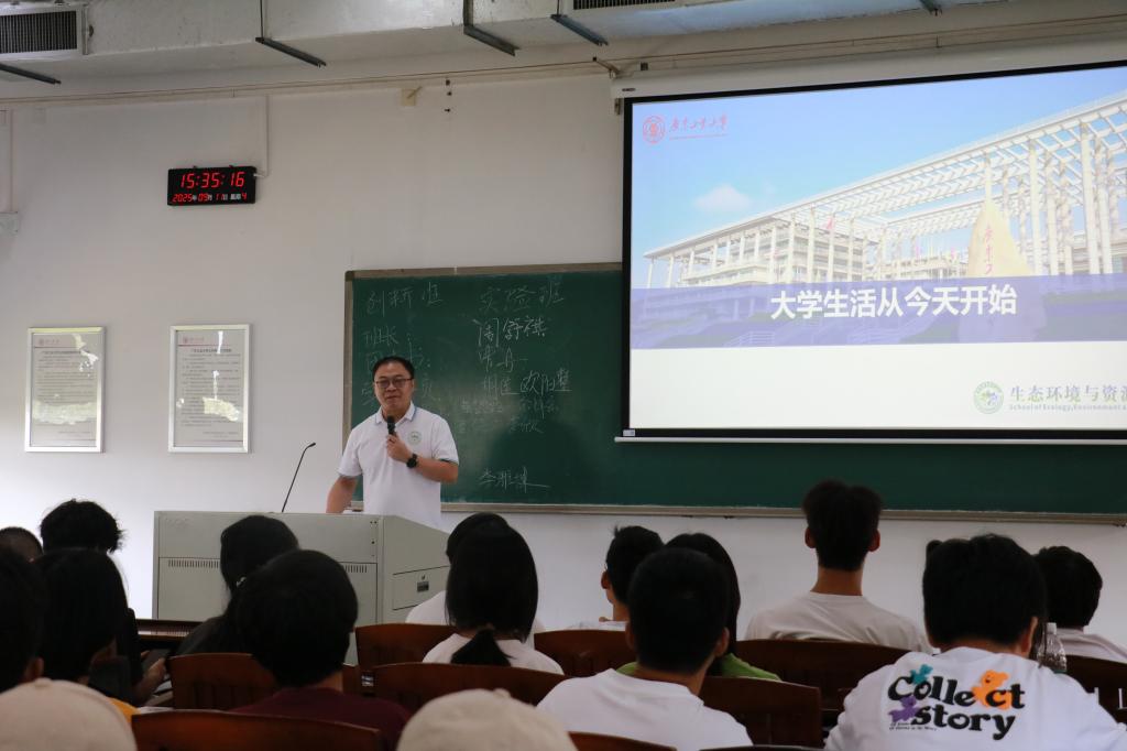 在教1-422召开本科新生年级大会。2025级环境生态工程(创新班)班主任洪念老师、辅导员欧少珍以及全体2025级本科新生参加。