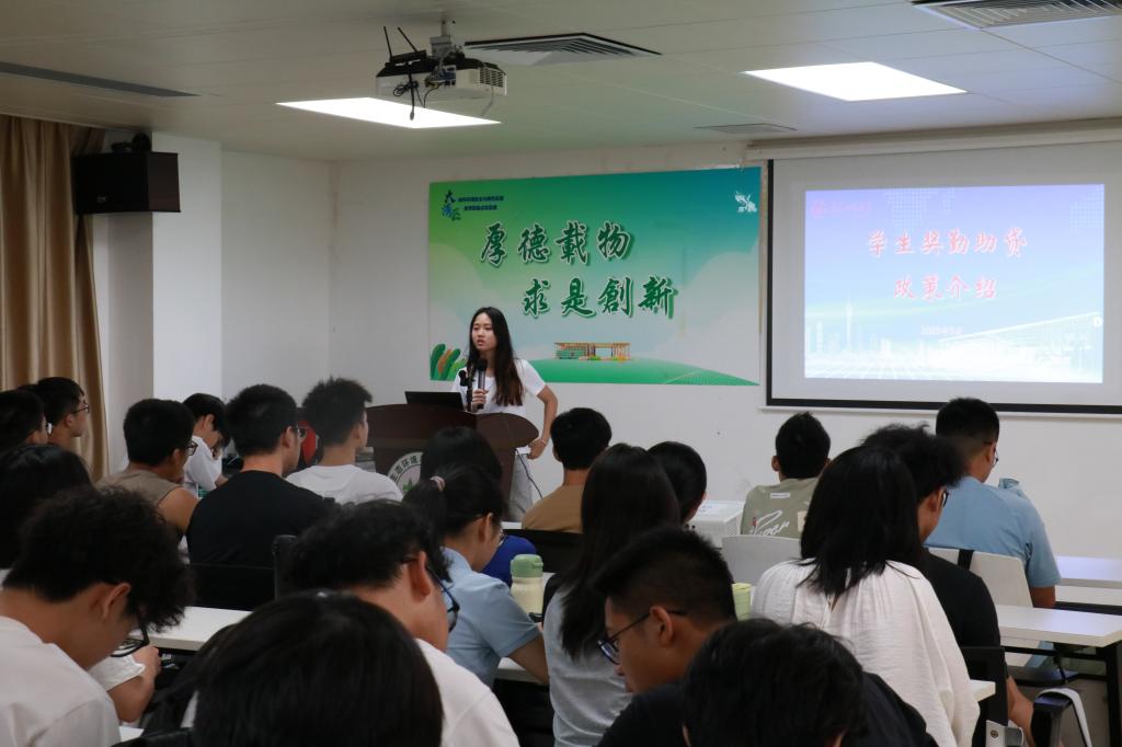 邀请了吴浩天、胡语昕、余坤霖、陈彪、黄婷婷等不同年级优秀学生代表进行分享,他们围绕学生工作、学业规划、社会实践等方面展开,鼓励新生们勇敢走出舒适圈,积极参与学生工作,在实践中拓展视野、提升综合素养、拓宽交际圈。