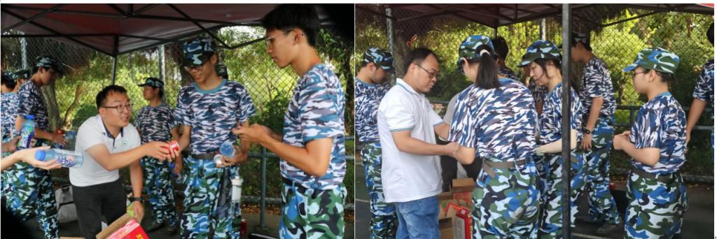 老师一行向承训教官和同学们送上了解暑慰问品。新生们畅饮着老王论坛
