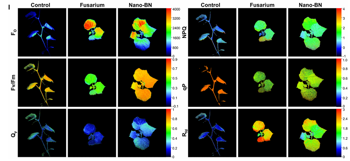 图1根部施加nano-BN缓解了镰刀菌造成的光合作用损伤