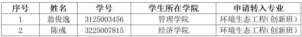 2026年春季学期转专业工作方案》,目前已确定进入面试的名单如下,请以下学生按时参加面试。