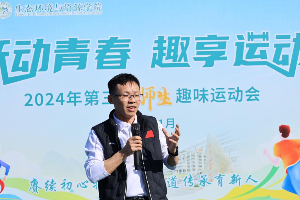 班主任代表杜青平教授引用毛泽东的《沁园春·雪》激励同学们积极进取、奋勇拼搏;吴国钟教授则强调了体育对健康、意志和品格培养的重要性,鼓励同学们逆境坚守,在团队运动中学会合作互助。