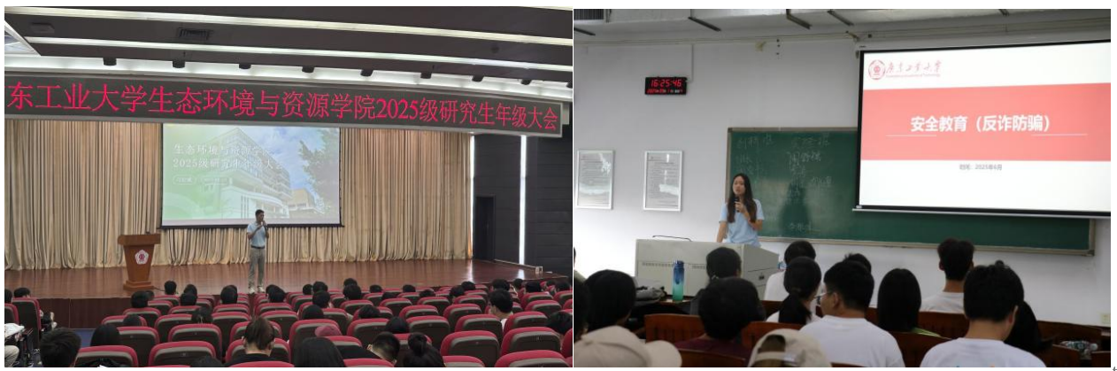 校园安全你我共建入学教育期间,老王论坛 研究生新生辅导员刁衍斌、本科生新生辅导员欧少珍分别组织召开了安全教育年级大会,从防诈骗防刷单、交通安全、宿舍用电与消防安全等多个维度,强调集体环境中自我防护与互助互警的重要性,引导同学们将安全知识转化为日常行为习惯,真正实现“安全意识入脑入心”。