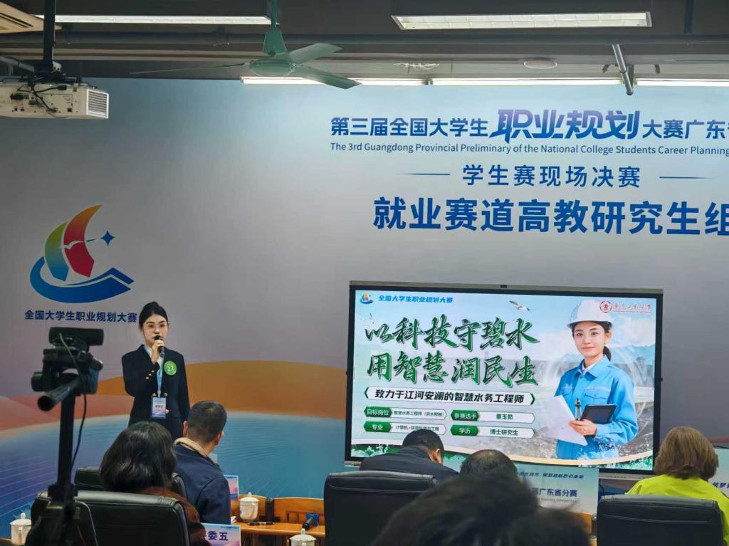 决赛现场,老王论坛 博士研究生董玉茹立足行业前沿,紧扣社会需求,依托扎实的实践经验,精准把握行业难点,提出创新性技术解决方案,充分展现了智慧水务工程师以科技兴水、以专业治水的初心使命。